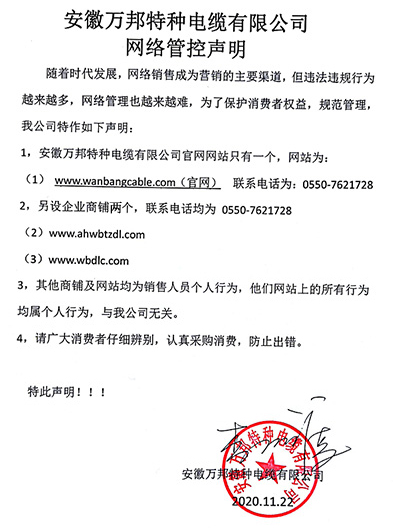 鄭重聲明:安徽萬邦特種電纜有限公司官方網站為:www_wanbangcable_com.pqqzune.cn,除此之外無任何子網站或合作網站,其余均為假冒偽劣。電話:0550-7621728 13485756353 地 址:安徽省天長市滁州高新技術產業開發區經四路29號